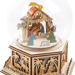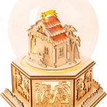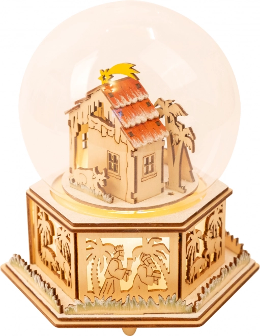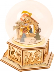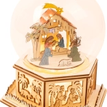 Táto krásna svetelná dekorácia je vyrobená z kvalitného dreva. Hudobná skrinka s vianočným motívom betlehema hrá melódiu "Tichá noc". Počas prehrávania hudby rozsvietená sviatočná guľa vydáva tlmené svetlo. Batérie nie sú súčasťou balenia. Hlavné vlastnosti: sviatočná guľa a hracia skrinka v jednom dodá Vianociam príjemnú atmosféru, drobné, jemne vyrezávané detaily, zodpovedá európskej bezpečnostnej norme