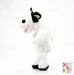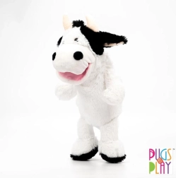 Roztomilá maňuška kravička od značky PUGS AT PLAY poteší všetkých malých milovníkov zvieratiek. Vďaka otvoru na ruku ľahko ovládate pohyby a zvuk tlamičky, čo z maňušky robí zábavného spievajúceho kamaráta. Je vyrobená z mäkkého a hebkého plyšu, ktorý je príjemný na dotyk, a hravou formou rozvíja jemnú motoriku, kreativitu a slovnú zásobu. Výška cca 32 cm (rozmery cca 14 × 14 × 32 cm). Batérie 3× AG13 sú súčasťou a nie sú určené na výmenu. Údržba: ručné pranie do 30 °C.