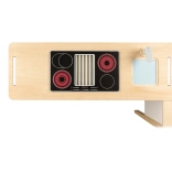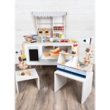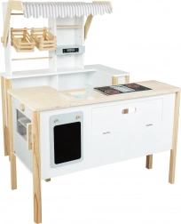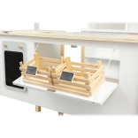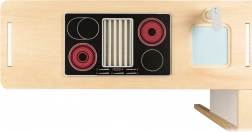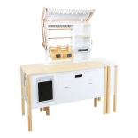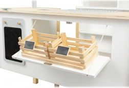 Obsahuje váhu, výklopné police, popisovacie tabule, kávovar a úložné priestory s bedničkami, ktoré podporujú kreativitu detí a inšpirujú k nekonečným hrám.