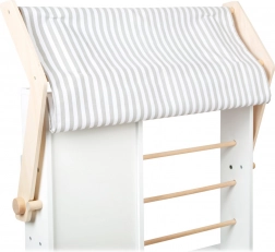 Objavte kreatívny svet s naším multifunkčným stánkom, ktorý je navrhnutý pre detskú hravú predstavivosť. Jeho premieňajúca sa konštrukcia umožňuje jednoduchú transformáciu z predajného stánku na kuchyňu či kaviareň počas okamihu. Multifunkčnosť v tomto stánku zahŕňa váhu, výklopné police, tabule na kreslenie a dokonca aj kávovar s úložným priestorom obsahujúcim dva bedničky. Skvelým doplnkom je variabilná markíza, ktorú možno ľahko sklopiť pre úsporu miesta.