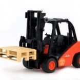 Model disponuje realistickým ovládaním – zdvíhací stožiar plynulo zdvíha a spúšťa vidlice, ramená sa nakláňajú a zadná náprava je riadená pre ľahké manévrovanie. Súčasťou balenia sú dve palety na okamžitú hru a nakládku. Konštrukcia z kvalitného plastu zaručuje dlhú životnosť a bezpečné používanie.