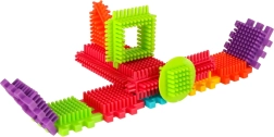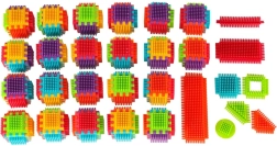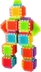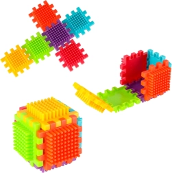 Bloky sú vyrobené z kvalitného plastu, sú veľmi ľahké, flexibilné a zároveň mimoriadne odolné. Pomáhajú pri učení nových tvarov a farieb a rozvíjajú manuálne zručnosti. Bloky sú navrhnuté tak, aby stimulovali rozvíjajúce sa zmysly dieťaťa: zrak prostredníctvom výrazných farieb a hmat prostredníctvom originálneho tvaru a spôsobu spájania. Bloky, ktoré vám poskytujú úžasné príležitosti na kreatívnu hru! Okrem tradičnej možnosti kombinovania ako pri bežných kockách je možné tieto bloky spájať aj celou plochou strany, čím získate ďalšiu možnosť tvorby. Môžu byť použité na stavbu budov, robotov a iných konštrukcií!