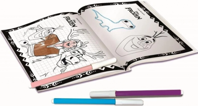 Farebné fixy a tematické kresby z filmu Frozen pomáhajú deťom rozvíjať kreativitu.