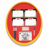 - maľovanky s návodmi, 4 stierateľné dosky, farebné fixky (min. 3 ks), guma / stieratko