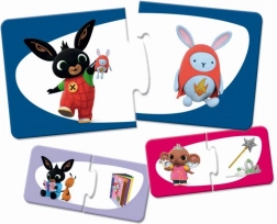 Táto roztomilá sada prvých puzzle s postavičkami z obľúbeného seriálu BING je skvelou voľbou pre batoľatá. Dvojdielne obrázky dieťa rýchlo pochopí a ľahko spojí, takže si užije zábavu bez zbytočnej frustrácie. Veľké, pevné a bezpečné dieliky sa dobre držia aj drobným rúčkam a pomáhajú rozvíjať koordináciu oko–ruka a logické myslenie.