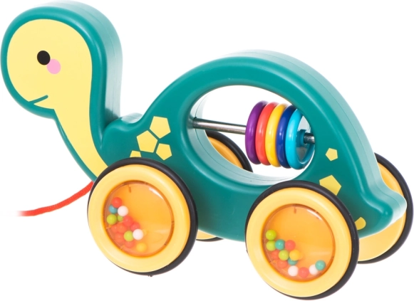 Skvelý spoločník pre vaše dieťa, ktorého si zamiluje nielen vďaka svojmu pestrému dizajnu, ale aj vďaka jeho interaktívnym funkciám. Zatiahni za šnúrku a spoločne sa vydajte na dobrodružné výlety! Korytnačka je navrhnutá tak, aby stimulovala zmyslové vnímanie vášho dieťaťa prostredníctvom zvukov chrastiacich korálikov a žiarivé farby, ktoré podporujú rozpoznávanie farieb.