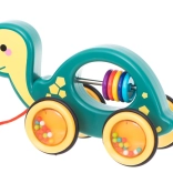 Táto farebná ťahacia hračka v tvare korytnačky ponúka deťom nekonečnú zábavu s farebnými korálikmi v kolesách, ktoré chrastia a vyzývajú k pohybu.
