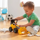 Tento detský stavebný nakladač o dĺžke 44 cm je vyrobený z elastického, vysoko kvalitného plastu, ktorý spĺňa európske normy. Je navrhnutý tak, aby deti mohli zažiť realistické scenáre pri hraní a posilňovať svoje motorické zručnosti. Nakladač obsahuje figúrku vodiča a ponúka široké možnosti pohybu vďaka zdvíhacej kabíne a otočnej lopate.