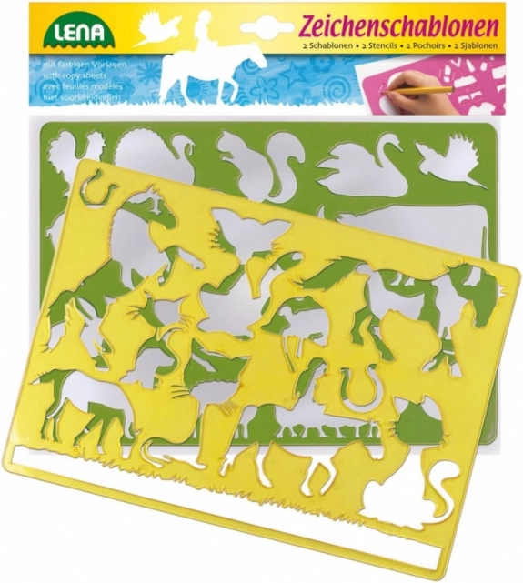 Objavte zábavné kreslenie so sadou šablón LENA s motívmi koní a mačiek. Dve veľké šablóny s rozmermi 27 × 23 cm pomáhajú deťom vytvárať presné obrázky, rozvíjajú ich jemnú motoriku, predstavivosť a vnímanie farieb. Ideálna kreatívna pomôcka pre deti od 3 rokov.
