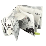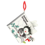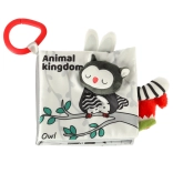 S touto mäkkou knižkou v kontrastných farbách sa vaše bábätko vydá objavovať svet zvieratiek – od sovy cez opičku a pandu až po mývala, slona, krokodíla či zebru. Čiernobiele a červené prvky podporujú skorú vizuálnu stimuláciu, zatiaľ čo rôzne textúry a interaktívne prvky rozvíjajú jemnú motoriku a koordináciu oko–ruka. Každá strana nesie anglické názvy zvierat, čo prirodzene podporuje aj prvú slovnú zásobu.