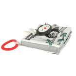 Knižka je ľahká, skladná a vďaka závesnému krúžku ju ľahko upevníte na kočík, autosedačku alebo postieľku. Šuštenie, hrkálka a pískadlo prebúdzajú zvedavosť, motivujú k uchopovaniu, stláčaniu a listovaniu – teda k aktivitám, ktoré podporujú senzorický rozvoj a samostatnú hru aj na cestách.