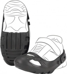 Popruhy a pružný tvar umožnia jednoduché nasadenie na rôzne detské topánky a spoľahlivé držanie aj pri svižnej jazde.