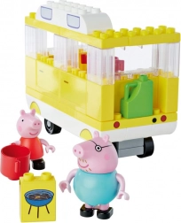 Vydajte sa s Peppou a jej ockom na víkendové dobrodružstvo v pohodlnom obytnom vozidle. Deti môžu otvoriť voz, usporiadať posedenie, variť v kuchynke, pripraviť čaj a rozložiť gril. Jasné farby, veľké stavebné dieliky a roztomilé doplnky lákajú k nekonečným príbehom.