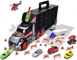 Veľký kamiónový kufrík s rukoväťou na jednoduché prenášanie ukrýva bohatú sadu na hranie – 7 kovových autíčok, nákladné auto a vrtuľník. Vďaka manuálnej vystreľovacej funkcii z kabíny môžu deti odštartovať pretek v priebehu sekundy. Robustné prevedenie a dĺžka 62 cm zaručujú množstvo zábavy aj praktické uloženie a organizáciu zbierky.