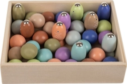Doska s priemerom 22 cm je vyrobená z odolného dreva a doplnená papierovou podložkou s motívom oceánu. Bohatá sada prvkov umožňuje rôzne herné varianty – od chytania rýb cez presúvanie guľôčok až po súťaže na čas.