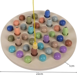 Táto drevená magnetická hra lovenie rybičiek je skvelou voľbou pre rozvoj detských zručností. Deti chytajú farebné rybičky pomocou magnetického prúta, triedia guľôčky a trénujú manipuláciu so štipcami a tyčinkami. Podporuje logické myslenie, pamäť a zručnosť a zároveň prináša množstvo radosti.