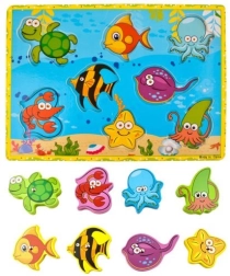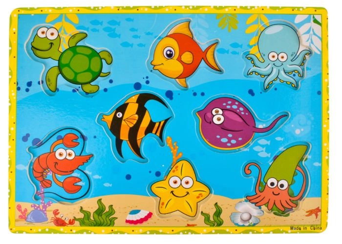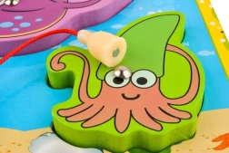 Hračka je vyrobená z kvalitného dreva s hladkými hranami a spĺňa bezpečnostné normy CE a EN 71. Zaujme živými farbami a milými ilustráciami, ktoré deti prirodzene motivujú k opakovanému hraniu a objavovaniu podmorského sveta.