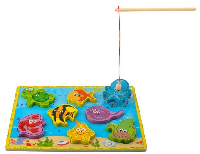 Deti najprv priraďujú tvary do výrezov a následne sa zahrajú na rybárov s magnetickým prútom. Dvojitá porcia zábavy aj učenia v jednej hračke.