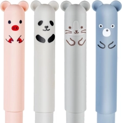 Sada obsahuje 4 štýlové vymazateľné perá v farbách sivá, biela, ružová a modrá s hravými motívmi zvieratiek (prasiatko, panda, myška, medvedík). Vďaka termocitlivému atramentu ľahko opravíte drobné chyby – stačí použiť mazaciu gumičku na konci pera a písať znova, bez nevzhľadných škrtov.
