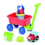 Ľahký, ale stabilný vozík s dlhým držadlom a širokými kolesami umožňuje deťom pohodlne prevážať náradie aj piesok medzi pieskoviskom a „staveniskom“. Skvelý pomocník na ukladanie a prenášanie celej súpravy.