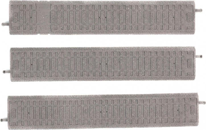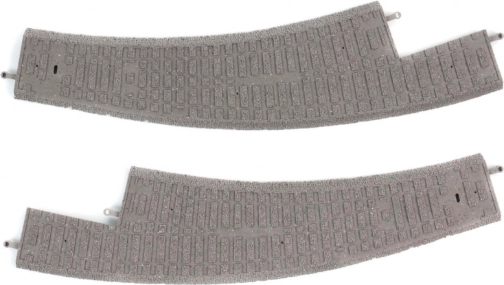 Diely presne zodpovedajú rovným aj oblúkovým úsekom, vrátane špeciálnych segmentov pre napájaciu svorku a pre oblúkové výhybky. Montáž je jednoduchá – podložie zasuniete pod koľaj a priloženými skrutkami pevne spojíte. Výsledkom je stabilná, rovná a tichá trať, pripravená na bezproblémovú prevádzku.