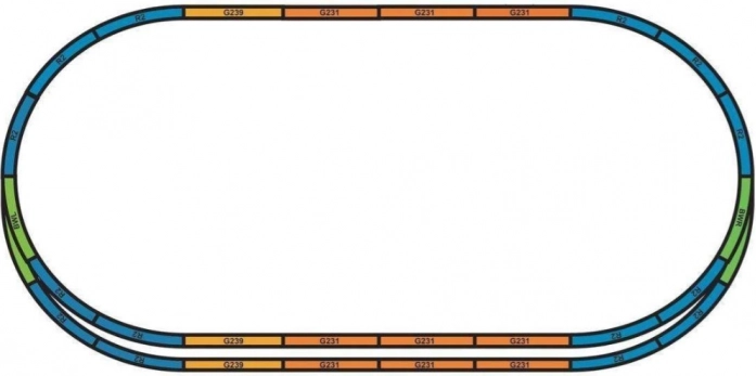 Podložie sa presne prispôsobí segmentom koľají a vďaka priloženým skrutkám drží pevne na mieste. Stavba oválu s paralelnou traťou je tak jednoduchá, rýchla a bez neporiadku.