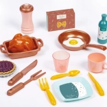 Súčasťou je 18 doplnkov: panvica s volským okom, pekáč s kurčaťom, náčinie na pečenie, tanier s príborom, pohár, hrnček, mlynček na korenie, krabička na cestoviny, fľaša vody a tortička.