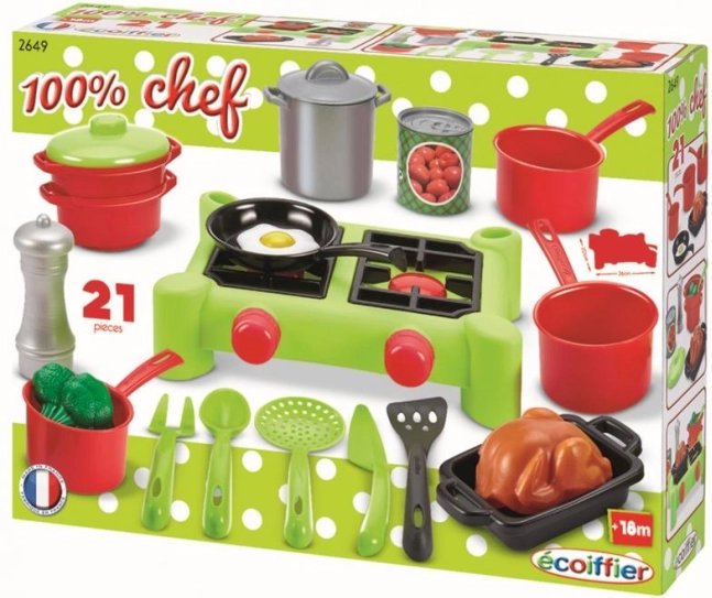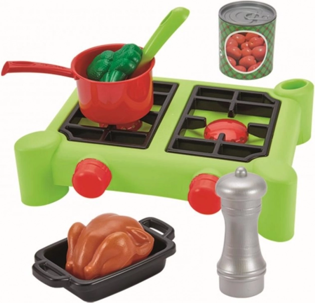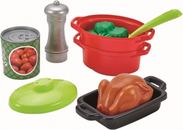 S touto kompletnou súpravou riadu si deti môžu užiť nekonečné hodiny varenia. Súprava zahŕňa hrnce s pokrievkami, rajnica, panvicu, pekáč a rôzne potraviny, ktoré dodávajú na realistickosti.