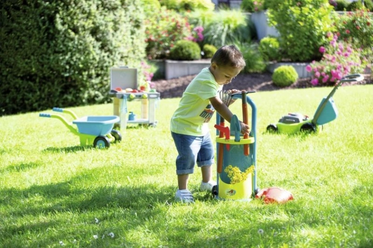 Vďaka kolieskam a rukoväti deti ľahko prevezú celé náradie tam, kde je práve potrebné – do záhrady, na dvor či ihrisko.