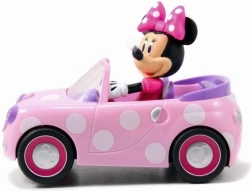 RC autíčko s Disney Minnie, 1-kanálové, frekvencia 2,4 GHz, jazdí dopredu rovno a dozadu. V ružovej farbe. Dĺžka 19 cm.
