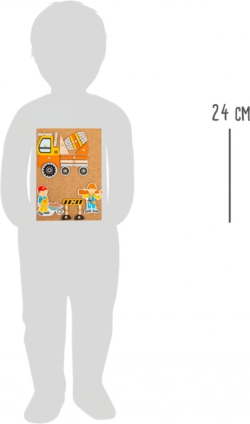 Korková tabuľa s pripináčikmi umožňuje opakované skladanie a prestavovanie dopravných a stavebných scén podľa fantázie detí.