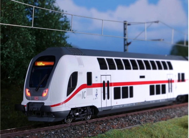 Detailne spracovaný riadiaci dvojpodlažný vozeň IC2 2. triedy pre mierku H0 s náterom a potlačou DB AG. Ponúka biele/červené LED osvetlenie so smerovým prepínaním, je pripravený pre ovládací dekodér a je ideálny pre ucelené súpravy IC2 s lokomotívami BR 146.5 alebo 147.5.