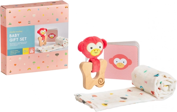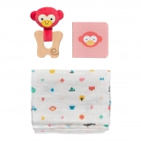 Štýlový darčekový set pre novorodencov s motívom opičky od PETIT COLLAGE poteší praktickými doplnkami a ohľaduplnosťou k prírode. Obsahuje hryzátko z FSC bukového dreva, mäkkú šatku z organickej bavlny a kartónovú obrázkovú knižku. Balenie je úplne bez plastov a materiály pochádzajú z udržateľných zdrojov.