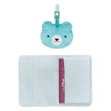 Štýlový a funkčný doplnok na cesty pre rodiny, ktoré často vyrážajú za dobrodružstvom. Obal na doklady s krásnou ilustráciou zvieratiek a motívmi cestovania bezpečne uloží pasy či kartičky poistenca, zatiaľ čo menovka v tvare medvedíka pomôže rýchlo rozpoznať kočík, tašku alebo kufor.