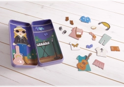 Praktická kovová krabička slúži ako úložisko aj scéna a umožňuje pohodlnú hru doma aj na cestách. Dve rôzne pozadia podporujú rozmanité scenáre a rozvíjajú detskú predstavivosť, trpezlivosť a jemnú motoriku.