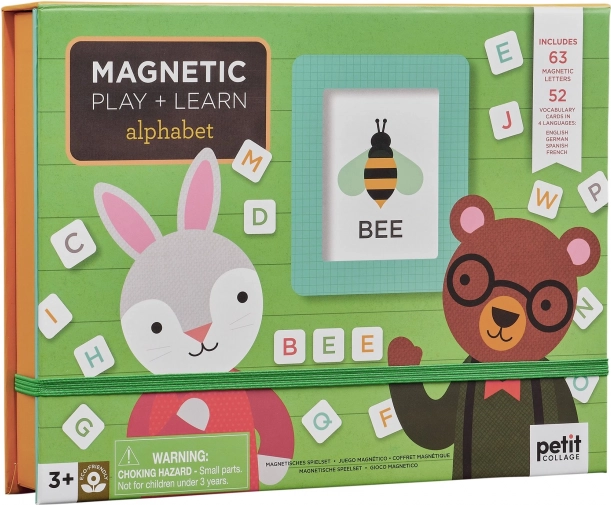 Učte deti abecedu zábavnou formou s prenosným setom Petit Collage. Obsahuje 52 ilustrovaných kariet so slovíčkami a 63 magnetických písmen v štyroch jazykoch. Vďaka veselým ilustráciám a farebným písmenám je učenie hračka. Odporúčané od 3 rokov.