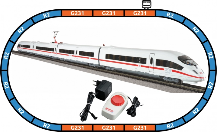 Táto kvalitná štartovacia sada je ideálna pre začiatočníkov aj pokročilých modelárov. Obsahuje štvordielnu elektrickú súpravu ICE 3 nemeckého dopravcu DB AG, oválne koľajisko s podložím a základný analógový ovládač so zdrojom. Vďaka rozhraniu NEM 652 možno lokomotívu jednoducho dovybaviť digitálnym dekodérom a zvukovým modulom.
