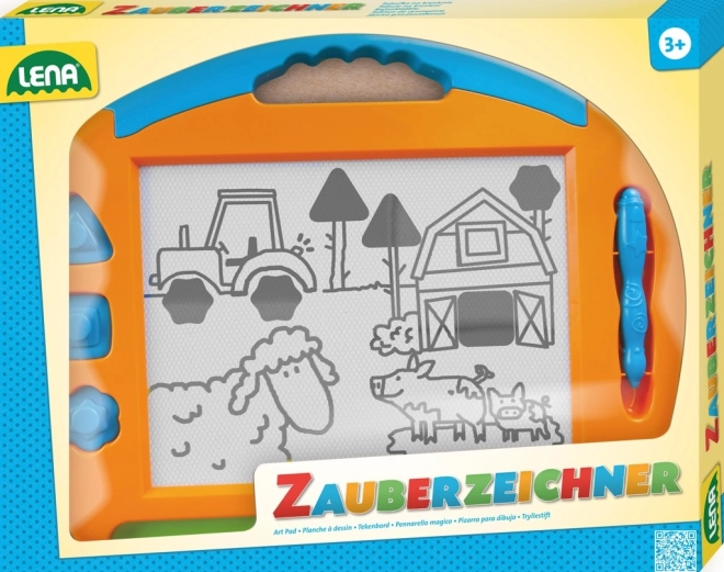 Farebná magnetická kresliaca tabuľka s dĺžkou 41 cm rozvíja detskú fantáziu a jemnú motoriku. Obsahuje stylus s kovovým hrotom, 3 magnetické pečiatky a posuvnú lištu na rýchle mazanie. Deti môžu ľahko kresliť, pečiatkovať a znovu mazať bez papiera, všetko bezpečne a pohodlne vďaka pevne pripojenej ceruzke na šnúrke.