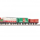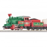 Parná lokomotíva 0-4-0 s tendrom, osobný vozeň a dva nákladné vozne v jednotnom sviatočnom dizajne. Perfektné pre okamžité navodenie atmosféry.