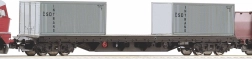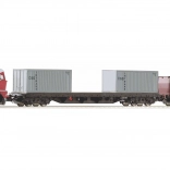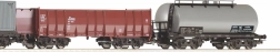 Súprava zahŕňa kontajnerové plošinové vozne, otvorený vozeň a cisternu pre autentický zmiešaný náklad a variabilné zostavy.