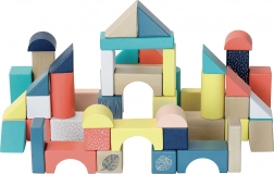 Táto sada drevených kociek Canopée ponúka pestrú kombináciu farebných a prírodných dielikov v mnohých tvaroch – od kvádrov a kociek po oblúky, valčeky a trojuholníky. Deti môžu stavať veže, domy aj celé mestečko, rozvíjať fantáziu a učiť sa základným princípom rovnováhy.