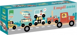 Farebná drevená sada s kamiónom a prívesom prináša hodiny kreatívnej zábavy pre deti od 2 rokov. Na dlhý príves možno nasadiť 6 vozidiel – taxi, policajné auto, hasičské auto, sanitku, helikoptéru a minibus. Hračka je z kvalitného dreva a kovu, má hladké spracovanie a podporuje jemnú motoriku, koordináciu ruka–oko aj fantáziu. Dizajn vytvorila renomovaná ilustrátorka Ingela P. Arrhenius.