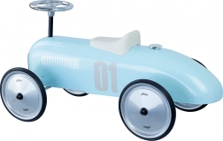 Objavte čaro klasických pretekárskych áut v detskom podaní. Toto svetlomodré kovové odrážadlo inšpirované veteránmi kombinuje nadčasový dizajn s bezpečnou a pohodlnou prevádzkou. Pogumované kolesá zabezpečujú tichý chod aj na tvrdom povrchu, zatiaľ čo volant ovláda zatáčanie predných kolies pre prirodzené riadenie.