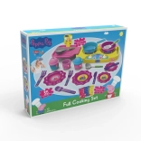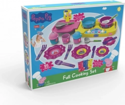 Plastová súprava riadu s motívom PRASIATKO PEPPA ponúkne deťom zábavnú hru na varenie. V balení nájdete 35 dielov vrátane variča, hrncov, tanierov, hrnčekov a príborov. Ľahké, odolné a ľahko umývateľné prevedenie.