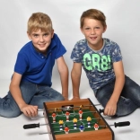 Tento menší stolný futbal je ideálnou voľbou pre všetkých milovníkov futbalu, ktorí si chcú užiť zábavu aj doma. Je skonštruovaný z farebného a lakovaného dreva, čo zaisťuje jeho dlhú životnosť. Každý tím má 6 futbalistov umiestnených na dvoch tyčiach, ktoré umožňujú jednoduché ovládanie a simuláciu skutočného futbalového zápasu.