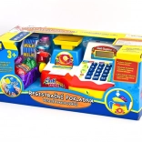 Obľúbená pokladnička s vysúvacou zásuvkou na peniaze, funkčnými tlačidlami, mikrofónom, váhou, košíkom a radom makiet potravín pre malých obchodníkov. Výrobok na batérie. Vhodné pre deti od 3 rokov.