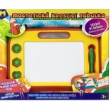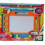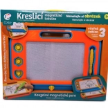 Magnetická kresliaca tabuľka je ideálnou voľbou pre malých umelcov doma aj na cestách. Vďaka kúzelnému magnetickému peru a trom pečiatkam si deti užijú hodiny tvorenia bez potreby papiera a pasteliek. Jediným posunutím mazacej lišty obrázok zmizne a plocha je pripravená na ďalšie dielo.