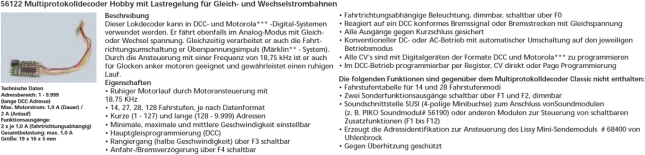 Výkonný multiprotocol dekodér Piko Loco je ideálny pre modely železníc poskytujúci bezproblémovú prevádzku vďaka kompatibilite so systémami DCC a Motorola. Tento dekodér je schopný pracovať tiež v analógovom režime so stejnosmerným napätím a podporuje prepínanie smeru jazdy pomocou prepäťových impulzov systému Märklin.