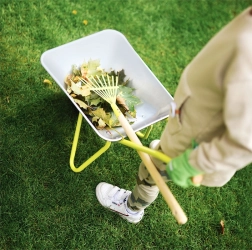 Súprava zahŕňa lopatu, hrable a bavlnené rukavice, čo z nej robí ideálny balíček pre malých záhradných pomocníkov.