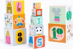 Kocky možno ľahko ukladať do vysokej veže alebo zasunúť do seba. Ideálne na rozvoj jemnej motoriky a priestorového vnímania.
